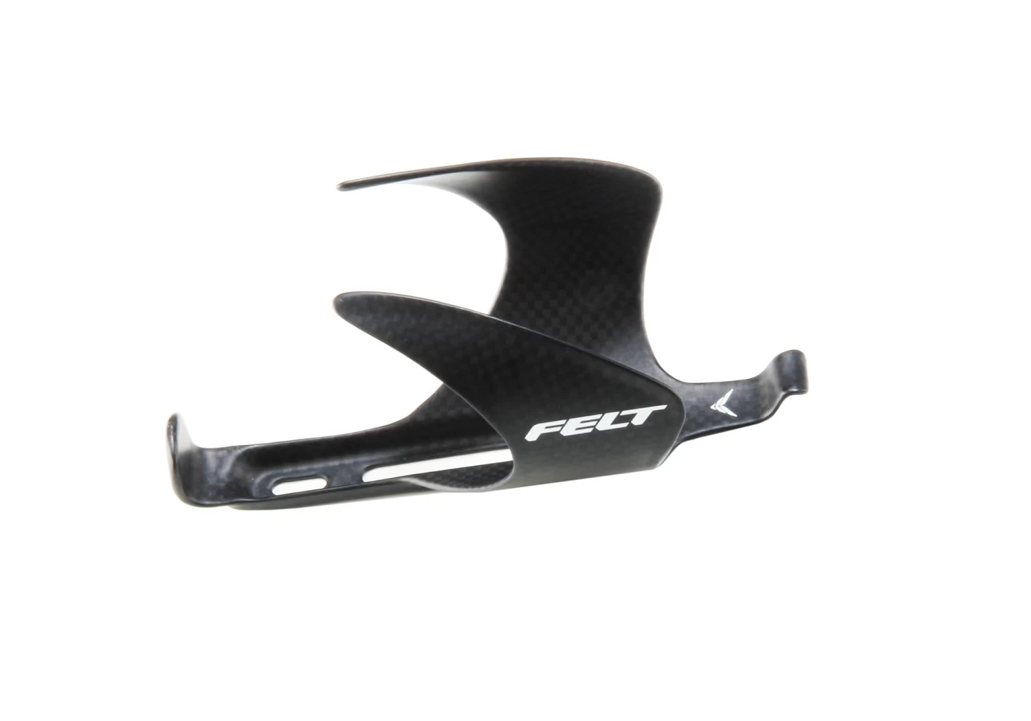 Carbon water bottle cage with white letter Felt logo.